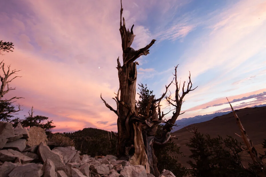 Very near Mono Lake there is another great landscape for photographers and time-lapsers – the Ancient Bristlecone Pine Forest. An ancient pine forest with pines almost 5,000 years old, which have defied time and weather conditions at more than 3,000 m above sea level, right in front of the Sierra Nevada Mountains.