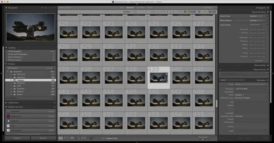 To edit your RAW files, you’ll just need to import the folder containing the RAW sequence to Adobe Lightroom, and follow the next steps: